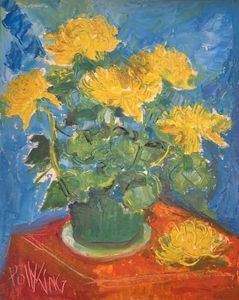 It is impossible to fully capture the essence of Polly King as an artist, as she was an inherently creative and curious individual. She saw art in everything around her, and expressed this inspiration through different styles and mediums. Her art did not just live on canvas: she created art and surrounded herself with it. She painted scenes on her bedroom window shades, and detailed motifs on her dressers and cabinets. Art permeated every aspect of her life and creations, serving as an essential element of her existence. Polly King believed in the inherent creativity that resides in all people, and worked every day to express her own.